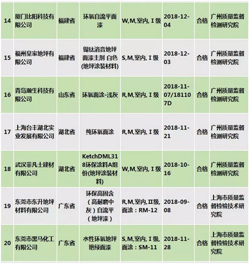 其中,地坪涂料产品质量国家监督抽查结果如下: